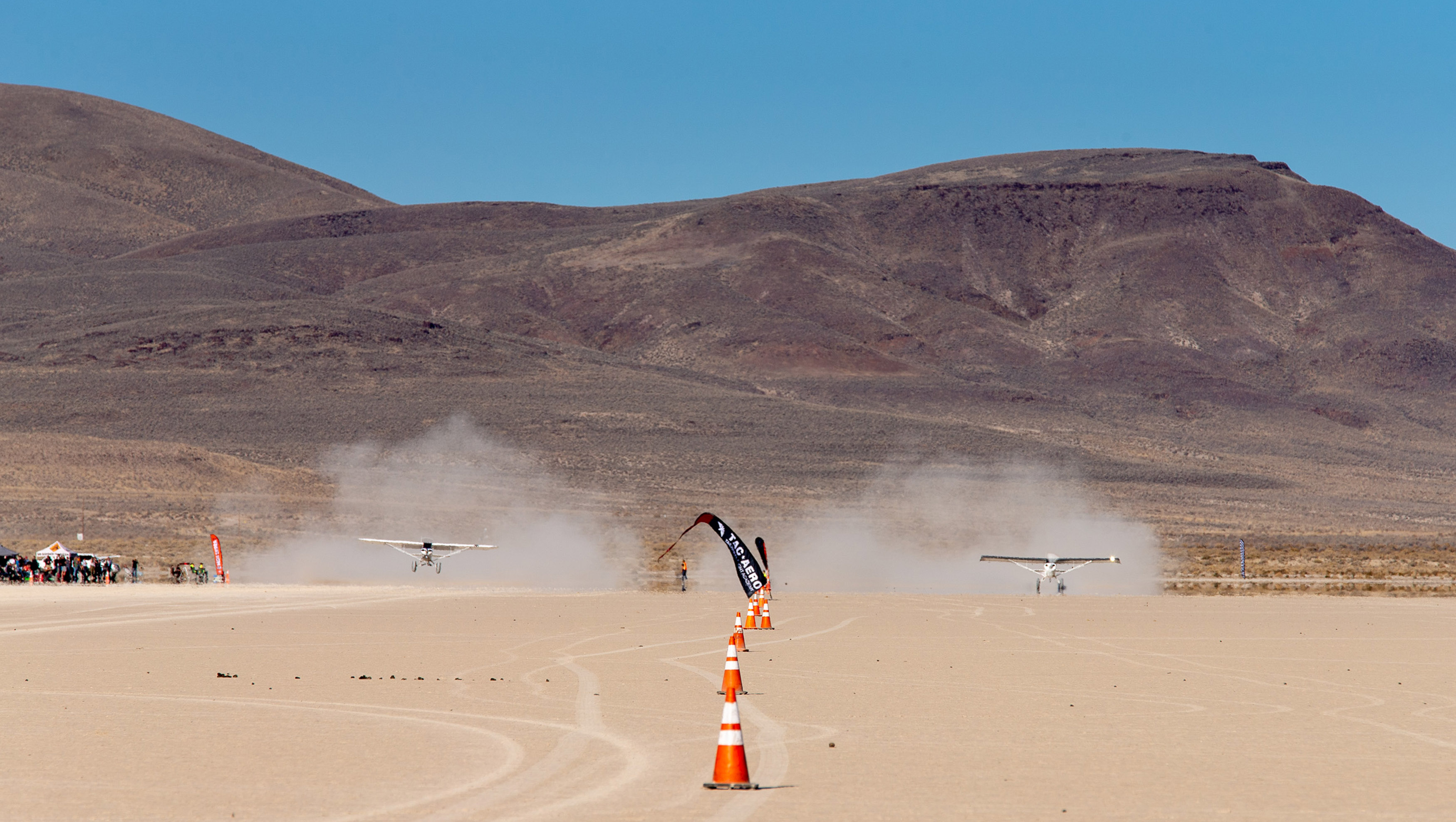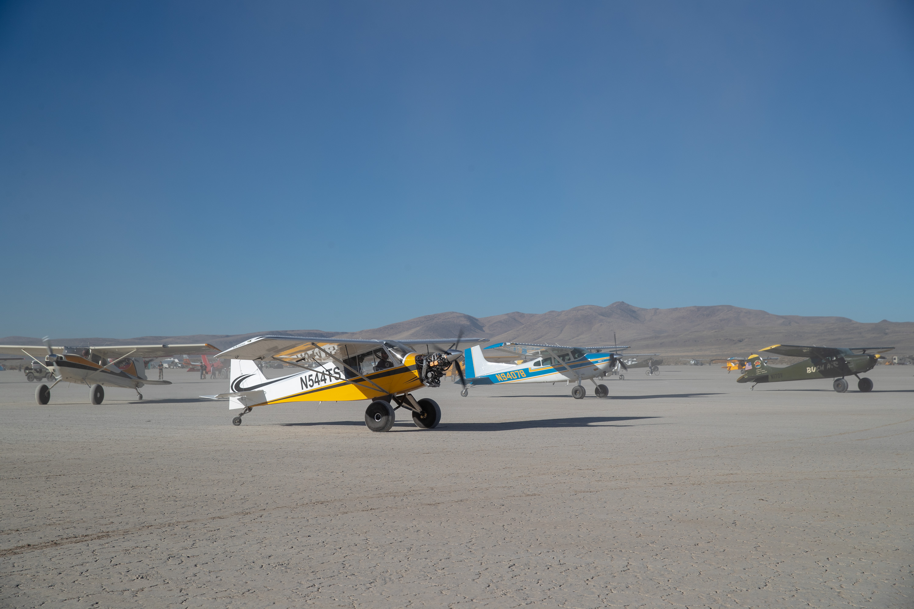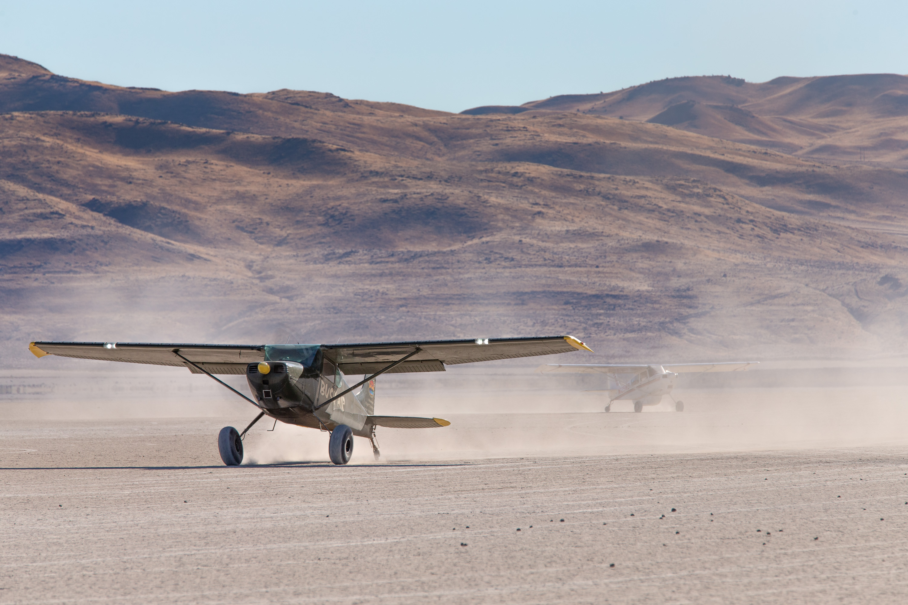 Situated somewhere in the middle of nowhere Nevada, the short takeoff and landing (STOL) drag races pit tailwheel aircraft and their pilots against one another in a race for speed and precision along a makeshift 3,000-foot runway. The surface hardened by the desert sun, this dry piece of nothingness becomes an oasis (sans water anywhere—BYOB) for four days in October while an intrepid group of friends who call themselves the “Flying Cowboys” put on a party. A party that puts aircraft and aviation prowess and skill on display.