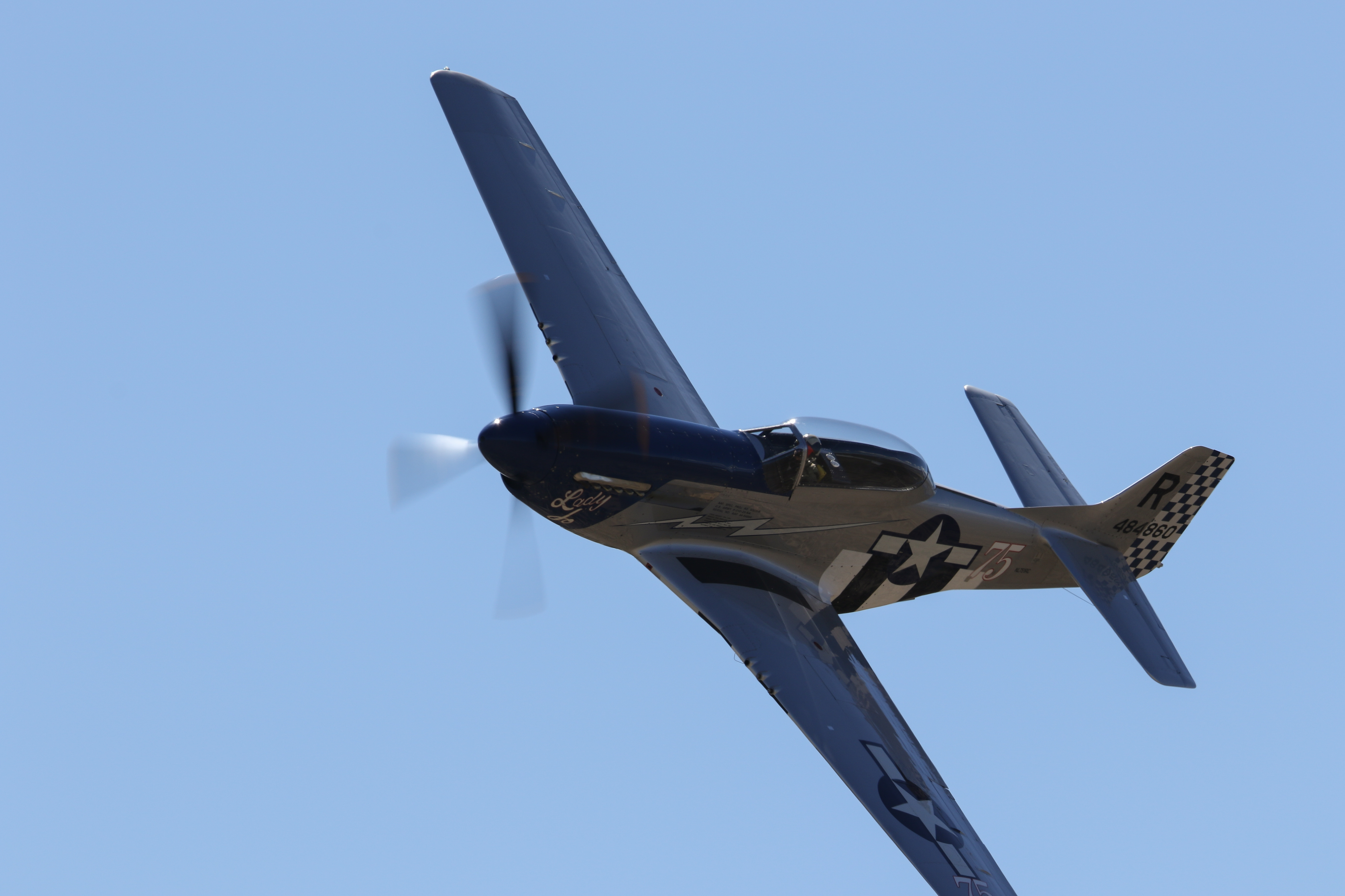 Although Thunderbird was not competing this year, on Saturday morning spectators were treated to a missing man formation featuring Thunderbird and three other historic P–51 Mustangs, including Bob Hoover’s Ole Yeller, Vicky Benzing’s Plum Crazy, and Planes of Fame’s Wee Willy II.