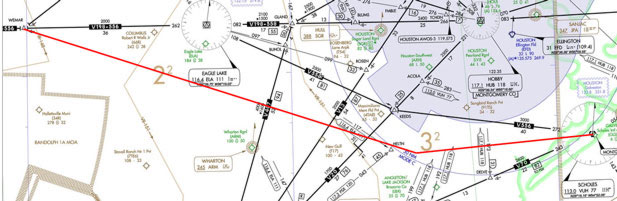 A new T-route south of Houston, Texas, will allow certain general aviation traffic to transit the busy terminal airspace efficiently.