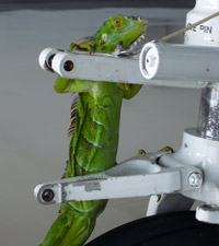 Pilot Steve Shoemaker of Fort Lauderdale found the iguana trying to blend in with the nose gear and called Bruce Woodrell of the nearby Banyan Air Service to take this picture. The iguana continued to pose until linemen bravely pushed it out of the hangar with a broom.