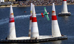 During the race pilots hit speeds of 250 mph and endure up to 10 Gs as they negotiate a series of inflatable pylons. Sometimes they even fly under bridges in a timed aerobatic ballet.