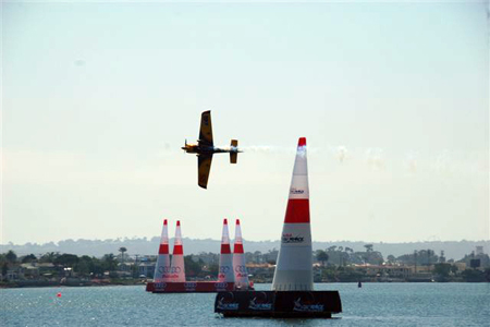 Promoters of the Red Bull race series claimed a crowd count of 55,000 in San Diego this past weekend as pilots flew a low-level pylon course for points. It was the only time this year that the 15 pilots will race in the United States.