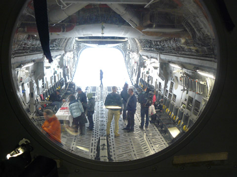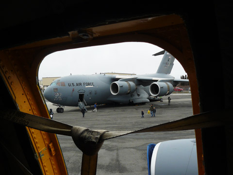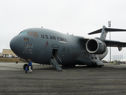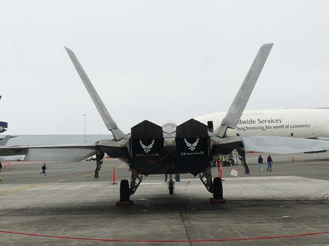 Outside the hangar, aircraft manufacturers showcased their latest aircraft, including many amphibious airplanes and others on floats, skis, and tundra tires. In addition, the U.S. Air Force showed off an F-22 fighter, a KC-135R tanker/transport, and a C-17 cargo airplane. FedEx and UPS allowed visitors to tour their MD-11 freighters.