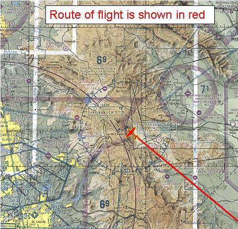 After another minute, the flight was at 5,900 feet, and still descending. TRACON then advised the pilot to fly heading 280 and to climb as high as possible. There was no reply. The aircraft wreckage was found on the northeast face of California's Volcan Mountain at 4,800 foot.