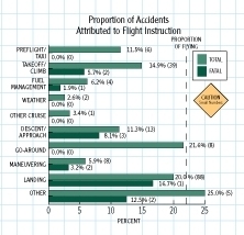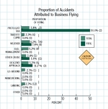 business flying (business people who are not professional pilots), which accounts for about 13 percent of the hours and only four percent of the fatal accidents, or instructional flying with 22 percent of the flight time and less than six percent of the fatal accidents. Business pilots may be more willing to scrub a trip, may fly more capable equipment, or may have more experience. Likely, it is a combination of all these factors.