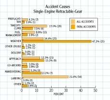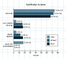 - Weather-related accidents accounted for 21.9 percent of all fatal pilot-related accidents. In multiengine airplanes, 16.2 percent of fatal accidents were weather � related. For single-engine retractable-gear airplanes, the figure was a whopping 47.2 percent. Fatal accidents during instrument approaches added to this total. These figures are comparable to those for the past decade as reported in the AOPA Air Safety Foundation�s Safety Review: General Aviation Weather Accidents.