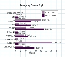 - 1 Takeoff and landing account for less than five percent of a typical cross-country flight, but 60.7 percent of the accidents for which the emergency phase of flight is known. The majority of these accidents were nonfatal. Only 15.6 percent of the fatal accidents occurred during takeoff while 3.1 percent of them occurred during landing.