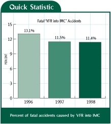 Was anything significantly different in 1998 from previous years? Not really. Pilot judgments regarding weather and maneuvering flight are the leading killer causes. Visual flight into instrument conditions is guaranteed