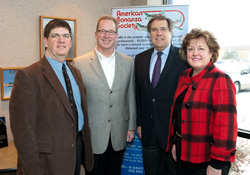 At the American Bonanza Society, Thomas Turner (ABS Technical Services Manager), Keith Kohout (ABS board member and treasurer), Fuller, and ABS Executive Director Nancy Johnson.