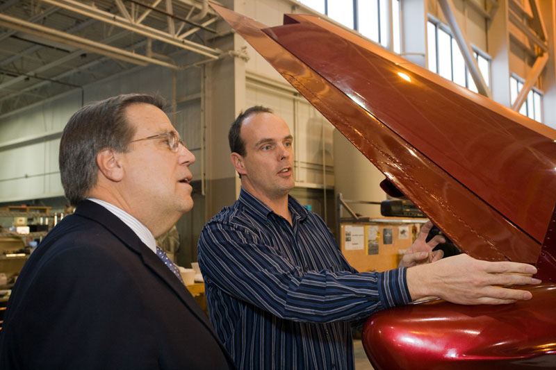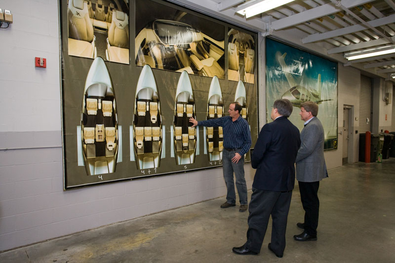 The Cirrus factory was shut down Friday during Fuller’s tour. The production line staff works four 10-hour days a week—Monday through Thursday, according to co-founder Dale Klapmeier. Like other manufacturers, Cirrus has had some layoffs and was closed during December to reduce costs and bring inventory levels in sync with sales. However, now production is back at a stable rate of eight aircraft a week, down from the high of 16 aircraft a week in September. The decreased production rate is allowing the company to look at the way it produces aircraft and find opportunities for improvement and efficiencies, according to Dale.
