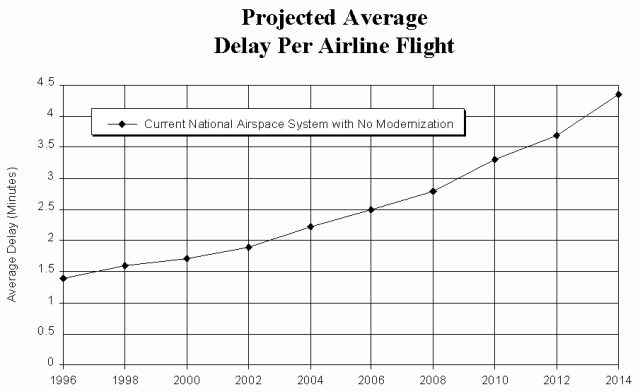 | Figure 1: NCARC chart of projected delays if the National Airspace system (NAS) is not modernized (from American Airlines study). |