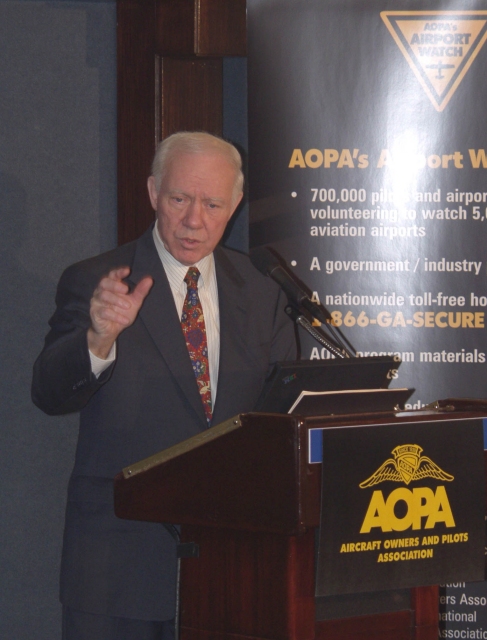 "This is a ground-breaking example of AOPA's leadership on behalf of all civil aviation in the United States," Rep. Oberstar told national media during a Washington, D.C., press conference. "All through our history of aviation, general aviation pilots have had a proud and patriotic tradition of keeping America safe and secure. As we fight this new war on terrorism, we need those eyes in the sky again. We have to keep the proud tradition of general aviation alive, strong, and contributing."