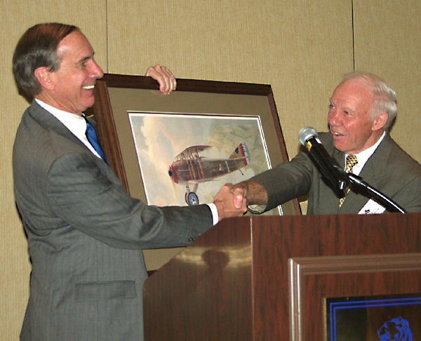 AOPA President Phil Boyer, master of ceremonies for the event, also made a special presentation to Hat in the Ring Society member Tom Haas.