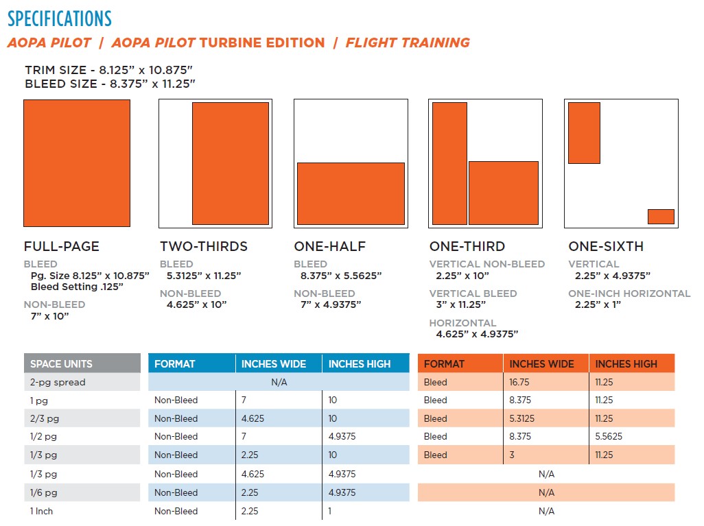 1 inch. Ads less than 1/6 page must be in even units with 2 1/4-inch maximum widths. Ads 1/6 page and larger must be standard units only. Bleed plate size 8 3/8 x 11 1/4 inches. Trim size 8 1/8 x 10 7/8 inches. Safety margin: Live matter must be kept 1/4 inch away from final trim size. Page is three columns wide; each column is 2 1/4 inches wide by 10 inches deep.