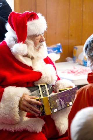Santa Claus, who bears a striking resemblance to longtime volunteer Jim Schultz, delivered presents, including racing sets, toy cars, and kits, to about 30 children on Tangier Island during the traditional Holly Run this month.