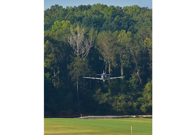 The annual Triple Tree Fly-In, held this year from Sept. 3 through 7, grows year after year, as pilots spread the word of this peaceful, almost-too-good-to-be-true oasis just outside of Greenville. The privately owned, private-use facility was created in 2000 and boasts a 7,000-by-400-foot grass strip—pristine golf-course-style grass that’s cut twice a week with a custom-built 36-foot-wide tractor-pulled mower. It also has a lake for seaplanes with a 4,000-by-200-foot landing area, a fishing pond, gazebos, a bath house, a tower, and a hangar filled with rare aircraft. An outdoor seating area behind the hangar features a large outdoor fireplace to keep visitors warm on chilly evenings.