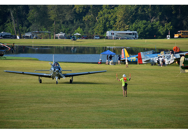 Pilots pull out their camping chairs and handheld radios to listen to traffic calls and watch aircraft—or perform a fly-by. Others get out their fishing poles. Some walk through the parking and camping areas to check out all the aircraft. When the pattern isn’t busy with traffic, you might to see two Cubs flying circles in formation over the field at sunset, or three Cessna 150/152s performing formation fly-overs, or an RV making a low approach with its smoke on, or even a P-51 strutting its stuff.