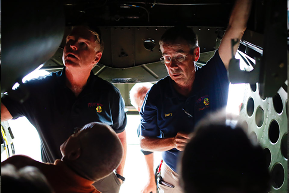For Kelley and his volunteers, including Calvin Peacock, Nuwer, and many others, keeping the airplane flying, maintained, and on display at public events is a labor of love—especially when they get the chance to fly disabled veterans, which is one of their causes. Given the operating costs, no one could blame them for parking the Mitchell in a hangar, but Kelley believes that seeing it in flight—and hearing it—are what connects people across the generations to the aviation effort of World War II, and reminds them of the great sacrifice made by so many. “When I go to the zoo, I don’t want to see a stuffed bear. I want to hear it roar,” he explains. And roar Panchito does, thanks to the crew at the Delaware Aviation Museum Foundation.