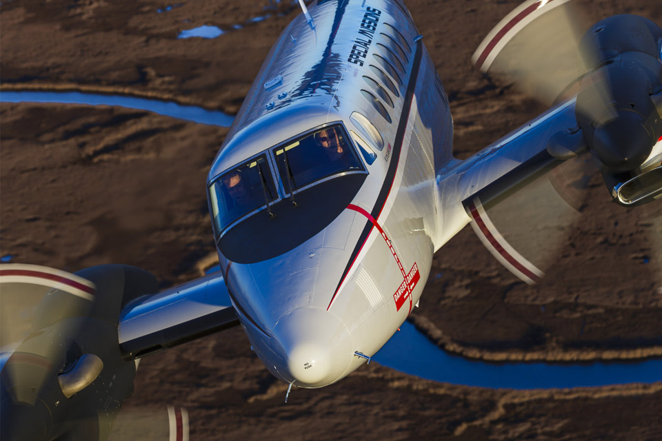 It’s this combination of attributes that makes the ER variants adaptable to a wide range of special missions. Under Textron’s Project Liberty, some 40 ERs (dubbed MC–12Ws) were sold to the United States Air Force for use in combat intelligence, surveillance, and reconnaissance missions. Some of them augment Predator and Reaper drone operations. The Iraqi air force has 350ERs it calls “Peace Dragons,” armed with Predator payloads. The U.S. Customs and Border Protection also uses 350ERs, and a maritime patrol variant also is in use. These airplanes are fitted with electro-optical, infrared, and television cameras, plus search radars and drop hatches. The MC–12Ws even have missile warning systems, complete with flare and chaff dispensers. Still other 350ERs see duty as air ambulances, aerial survey platforms, and navaid inspections systems. And yes, the executive version—the 350iER—is usually fitted out with eight plush, swiveling leather seats.