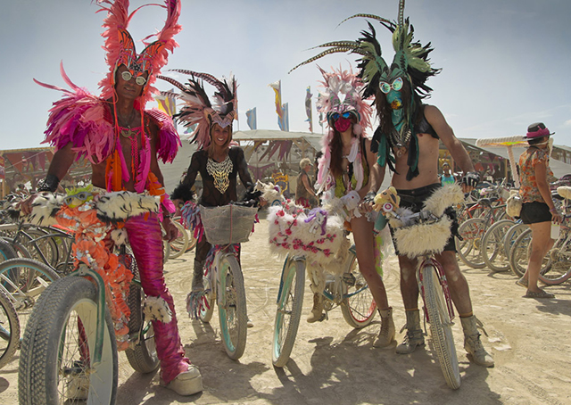 After about one mile, I come to the "Esplanade," the city's innermost circular street, the place burners go to see and be seen. There, I wait several minutes to cross because there's a seemingly endless procession of naked bicyclists.