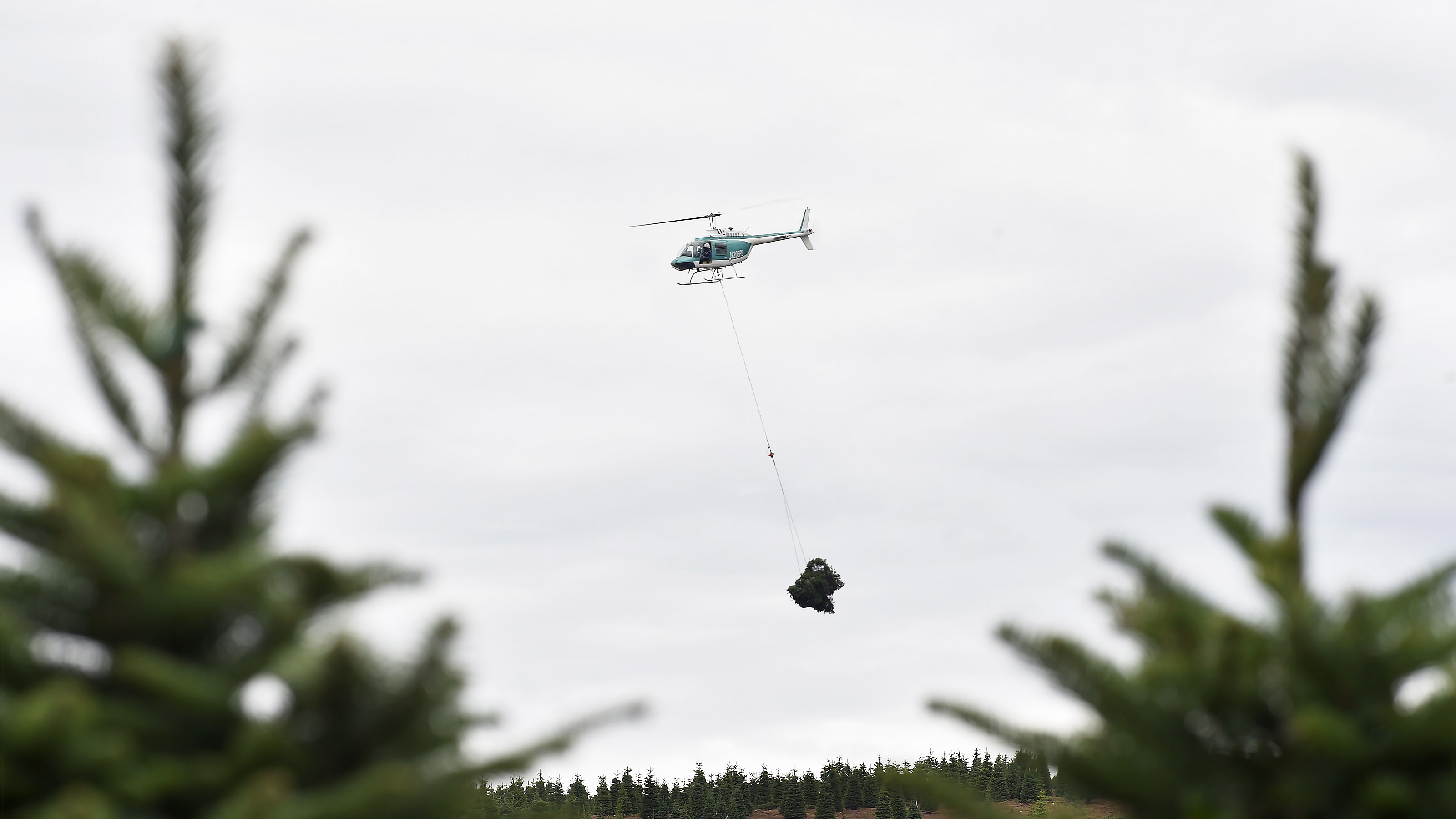 In a business where timing is everything, Christmas tree growers in the Pacific Northwest rely heavily on helicopters to perform a six-week aerial ballet choreographed with ground crews to spread joy and happiness to millions of families. For the past 40 years, Noble Mountain Tree Farm pilots have perfected a delicate dance they began in 1976, when the Hustle and the Bump ruled discos and dives.