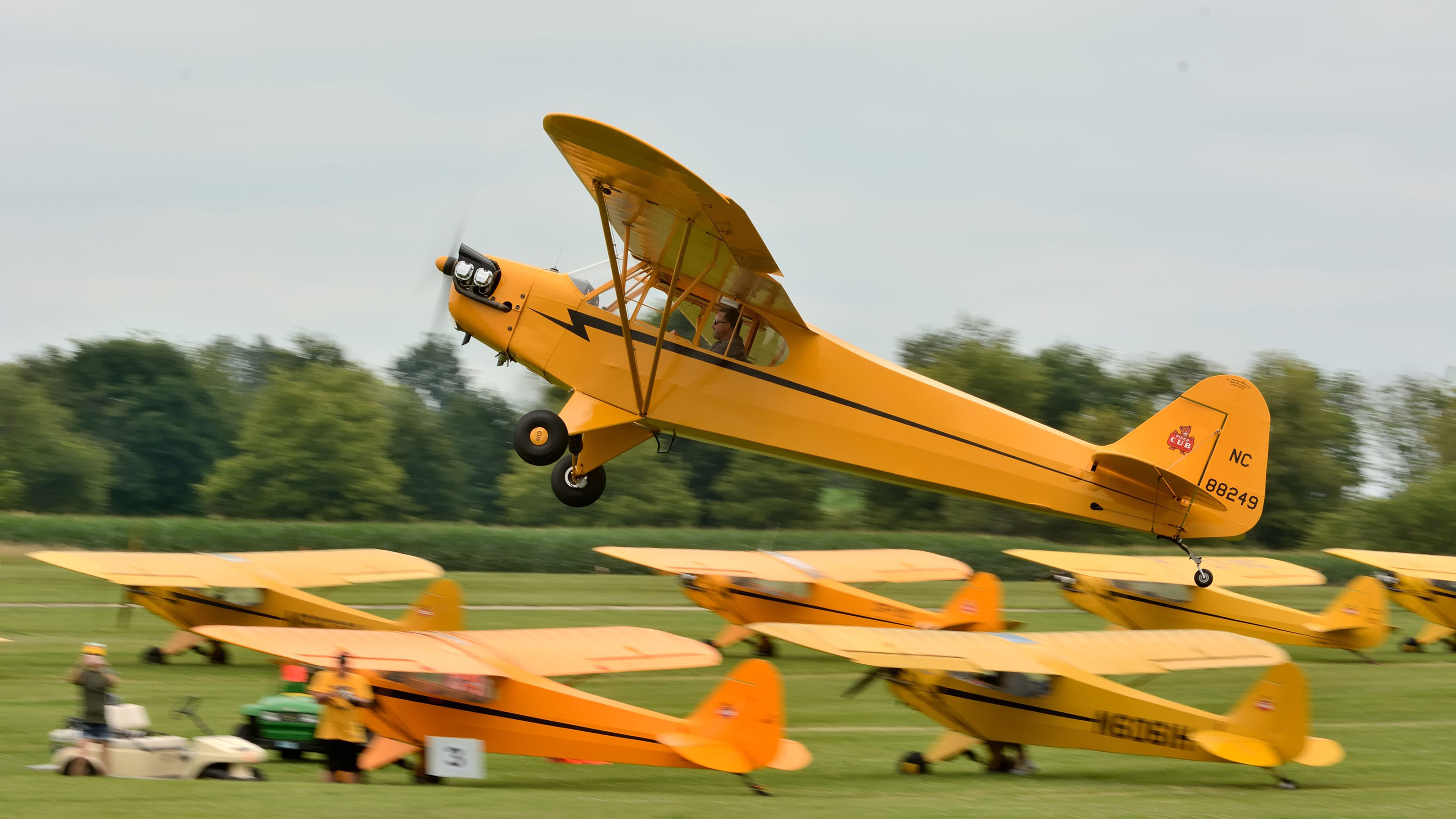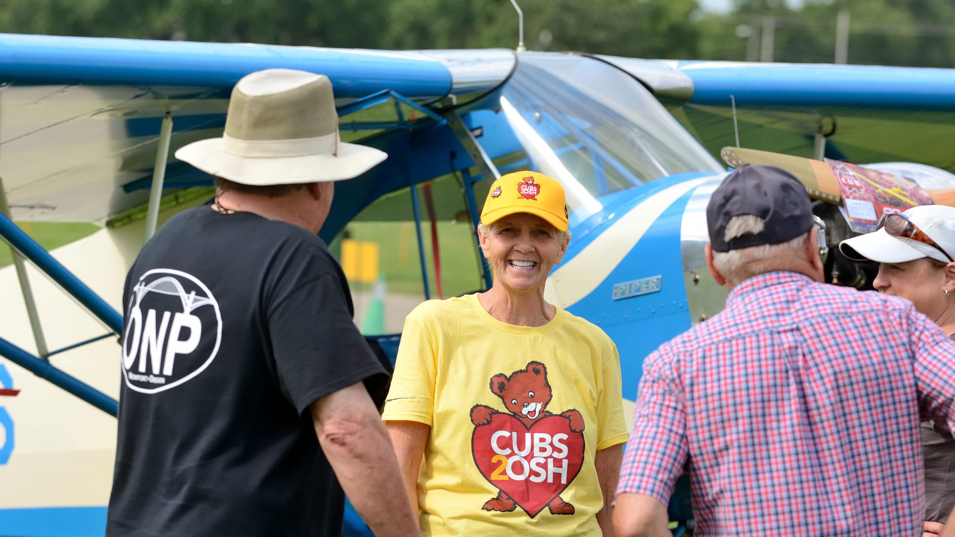 For the first Cubs to Oshkosh event five years ago, to celebrate the seventy-fifth anniversary of the iconic Piper Cub on July 22, 2012, the weather was mostly sunny—with temperatures topping 100 degrees Fahrenheit. Leading up to the eightieth anniversary event on Sunday, July 23, however, the weather was much cooler—and a lot wetter, stopping some pilots no more than 30 miles away from Hartford, Wisconsin, and causing others to reverse course while still hundreds of miles away.
