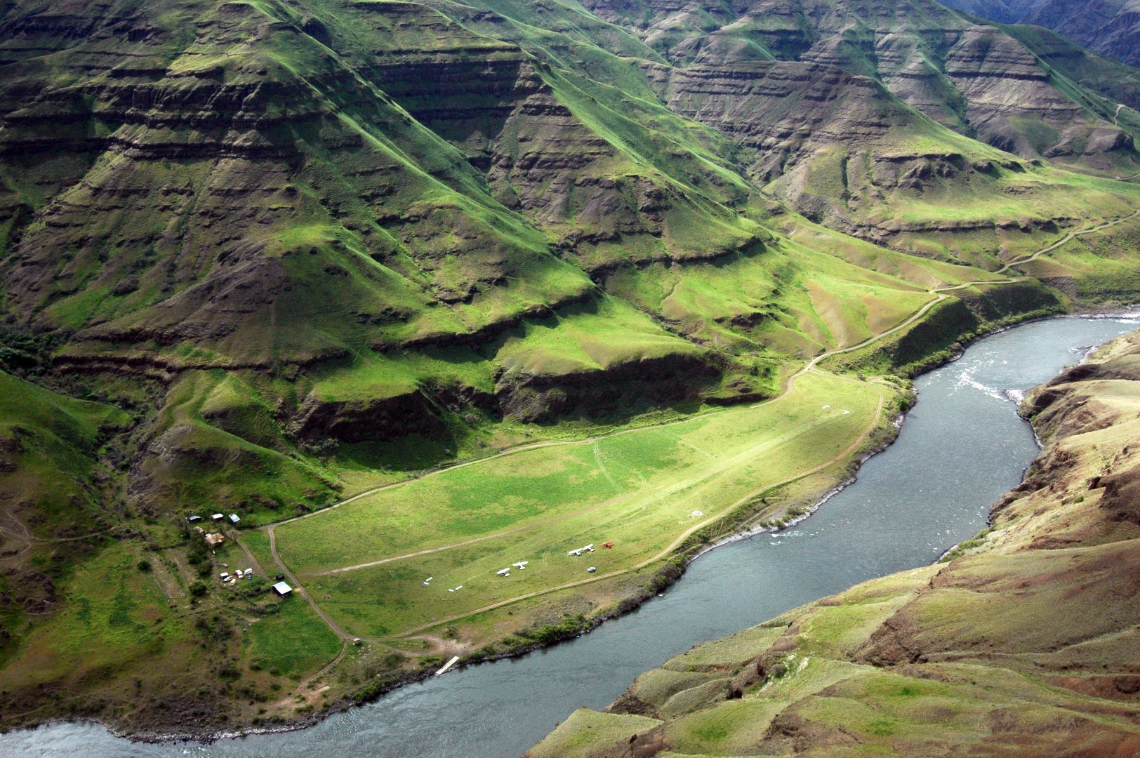 Hells Canyon: One of America’s deepest canyons, Hells Canyon was deepened significantly during the giant flood that ensued after a natural dam collapsed and Lake Bonneville (now called the Great Salt Lake) drained about 15,000 years ago. Most of the canyon is inaccessible by road, but several airstrips lie at the bottom of the canyon, including Dug Bar, Big Bar, Pittsburgh Landing, and others.