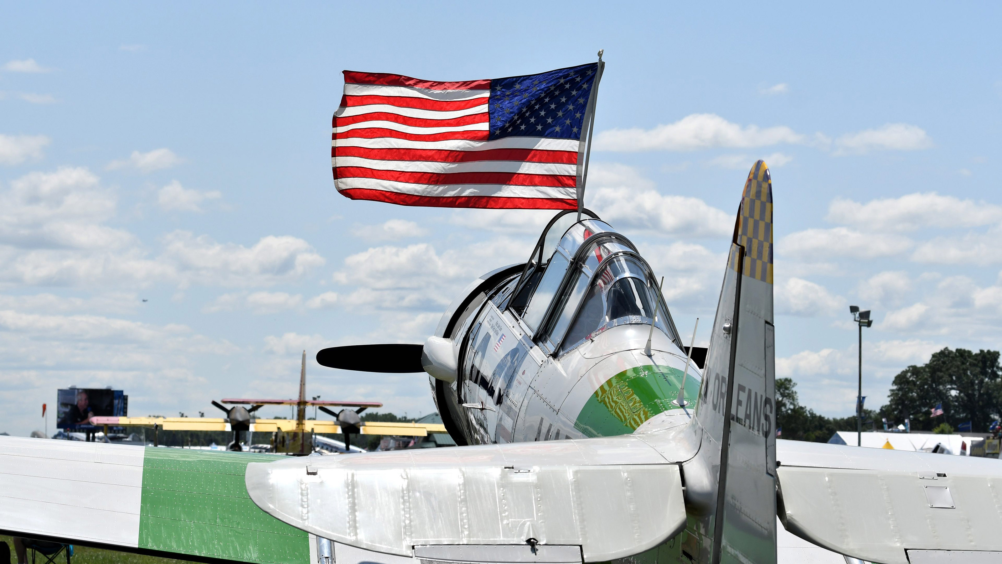 Pelton beamed about the great lineup at AirVenture this week: On Friday astronaut Michael Collins will help celebrate the fiftieth anniversary of the Apollo 11 mission, which landed men on the moon; from Tuesday through Thursday the fiftieth anniversary of the certification of the Boeing 747 will be celebrated, with one parked in Boeing Plaza; a reunion of 30 North American P–51 Mustangs will salute P–51 ace Clarence "Bud" Anderson as part of AirVenture's "Push to Victory" theme for World War II anniversaries; and much more.