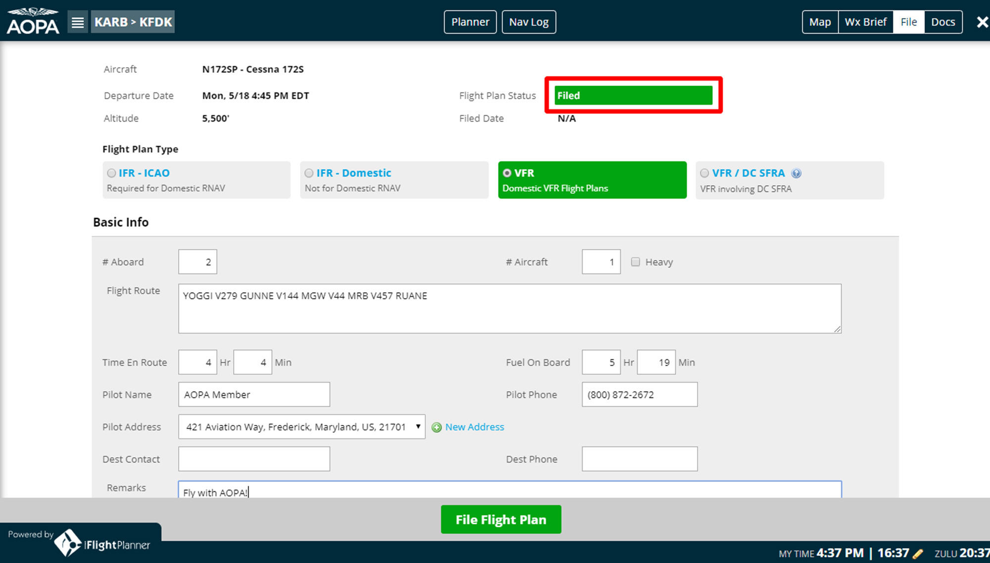 The iFlightPlanner became active April 22 and operates slightly differently from the previous AOPA flight planner interface.