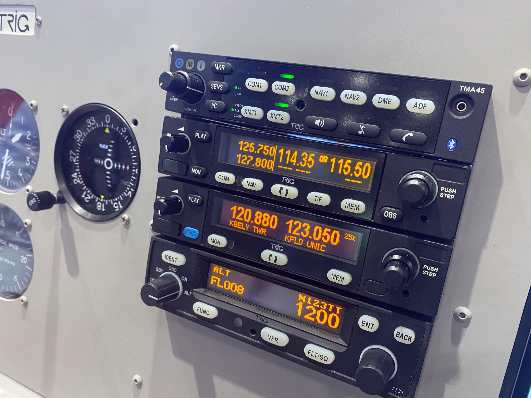 The TX56A (10 watts, $4,090) and TX57A (16 watts, $4,997) both feature an LCD screen that can display a course deviation indicator as a backup for that instrument, and will complete the stack that also includes an audio panel and transponder. Trig supplies preconnected wiring harnesses to reduce the labor required for installation.