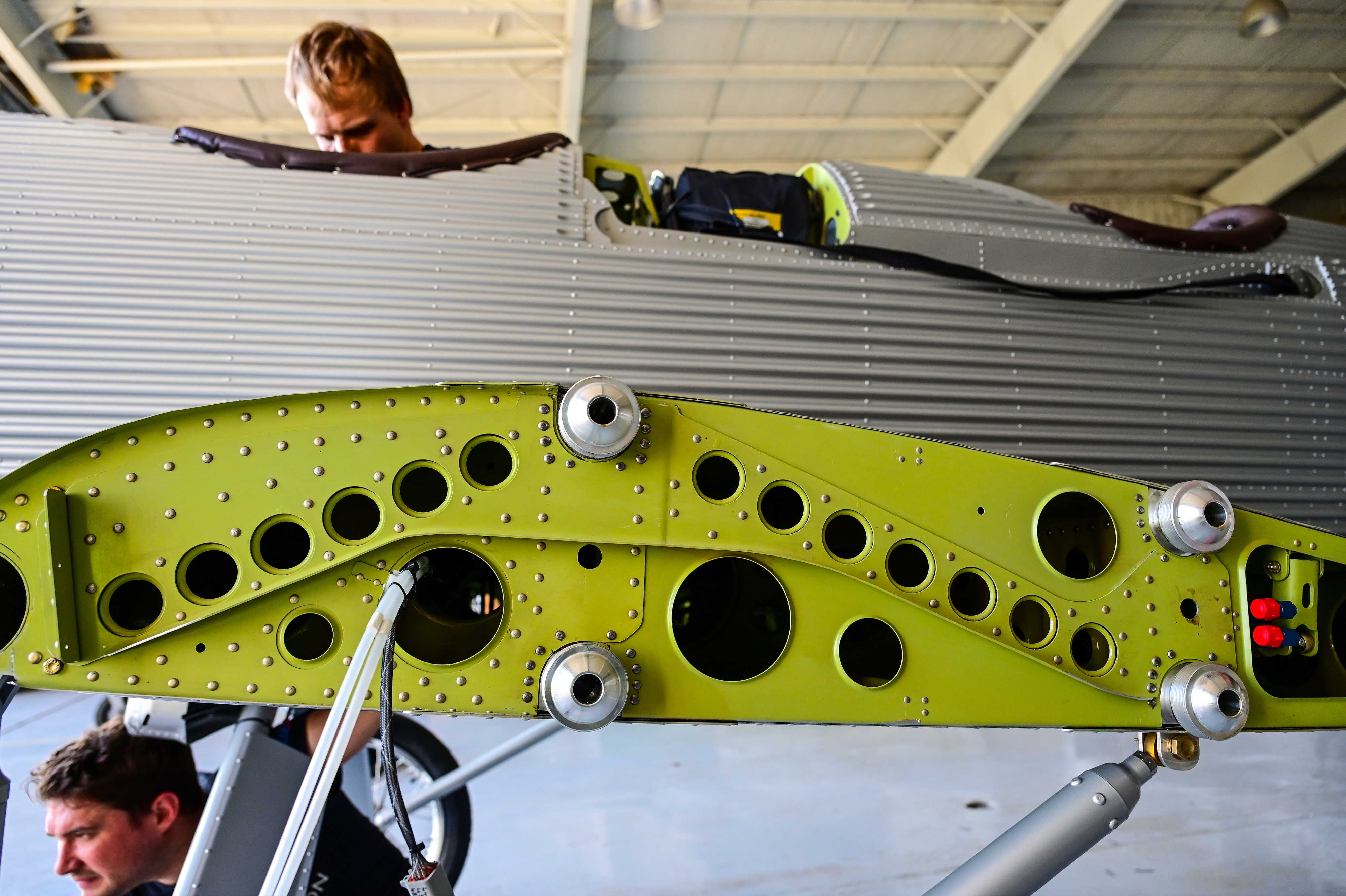 It’s a remarkable airplane in many ways. Its signature Junkers corrugated airframe certainly draws the eye, as do the large, spoked main landing gear and two tandem open cockpits. All these features—and a few more, like the wooden wing walk, and the leather coaming around the cockpit sills—are faithful to the 1929 design. So is the exemplary attention to detail in the execution of its construction details.