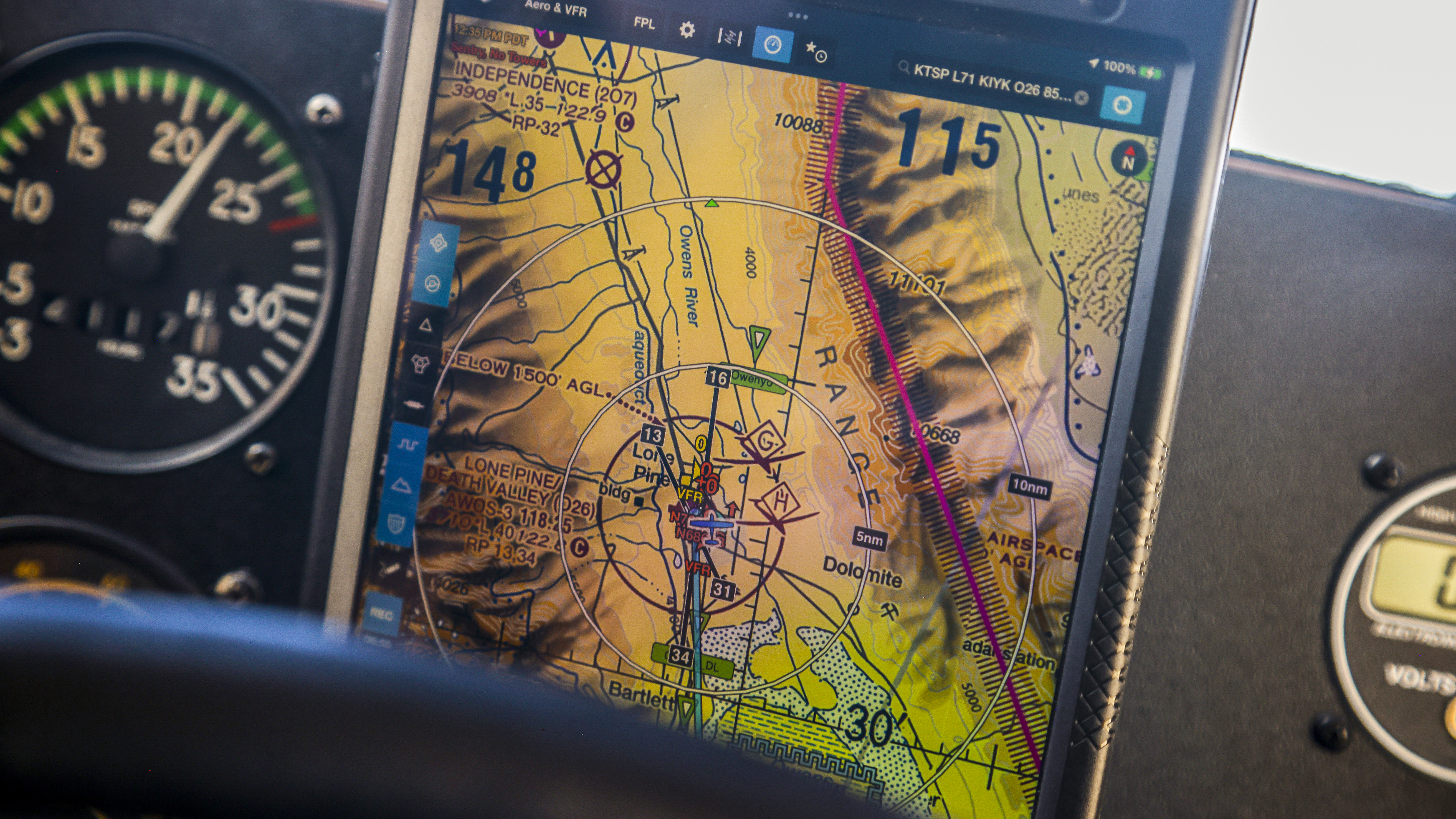 It’s a clear, cool, beautiful morning. For the 40 or so aircraft participating in today’s fly-outs, the departure is surprisingly smooth. The four groups depart slowest to fastest, with a plan to all return around the same time. We take a right downwind, paralleling the mountains. The Owens River spreads below us, a shallow mirror of the jagged Sierras.