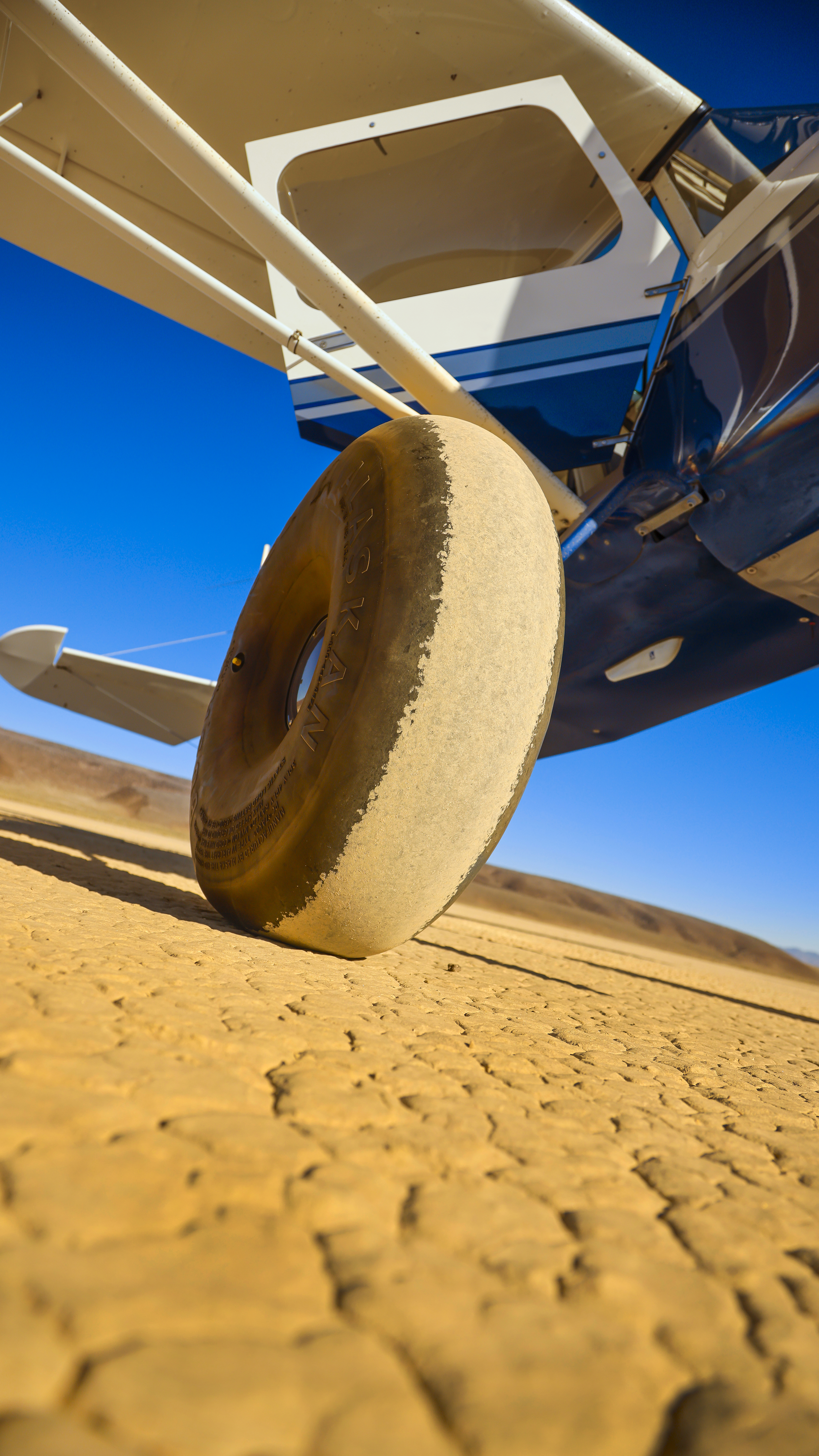 The Bonnie Claire lakebed shines like a blister in the sun, the playa so featureless and uniform that it’s nearly impossible to judge its size with eyes alone. The flat lighting of the lakebed reminds me of a glassy water landing—if you weren’t paying attention, it’d be easy to muck up the touchdown. Wheels create little dust clouds on contact, and we marvel at the fun of being in the middle of nowhere.
