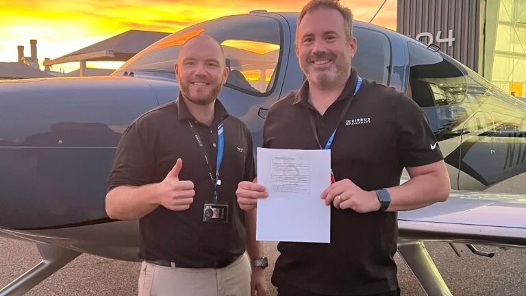 David’s journey began with his Private Pilot License, where Cirrus’ scenario-based training curriculum paired classroom knowledge with real-world application. Every challenge, from learning Air Traffic Control (ATC) communications to navigating first solo flights or flying cross-country, was supported by Cirrus’ dedicated flight instructors and coursework refined through decades of training thousands of pilots.