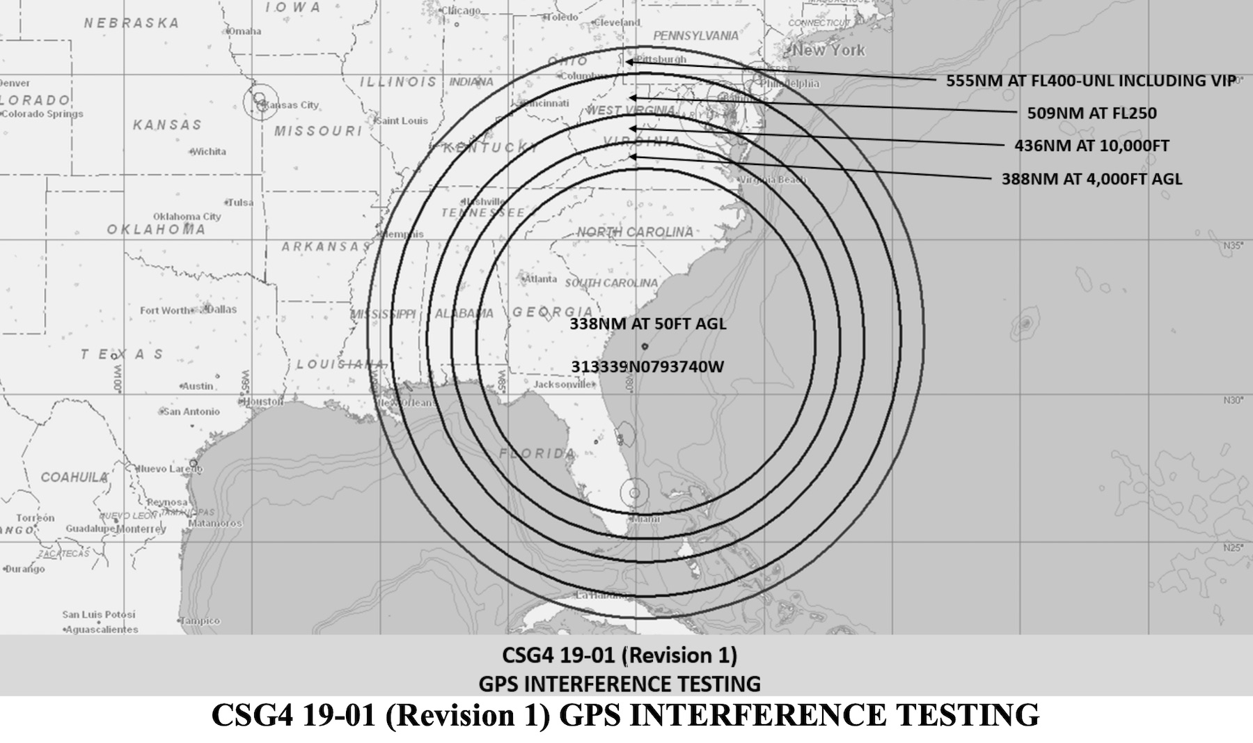 GPS may be unreliable or unavailable in vast swaths of airspace during military activity involving GPS jamming. The FAA posts flight advisories providing schedules of the interference activity, which can affect GPS and ADS-B service. Notices to Airmen (NOTAMs) are also issued to alert pilots to the tests. Such testing is occurring between February 6 and 10 off the coast of Georgia. It could degrade GPS from the Caribbean and Florida north to Pennsylvania, and as far west as eastern Louisiana (see the FAA’s Flight Advisory). The disruption in signals could impact navigation, surveillance, autopilot, and flight control systems that use GPS.