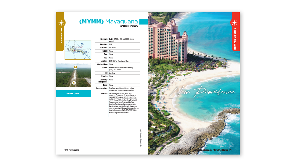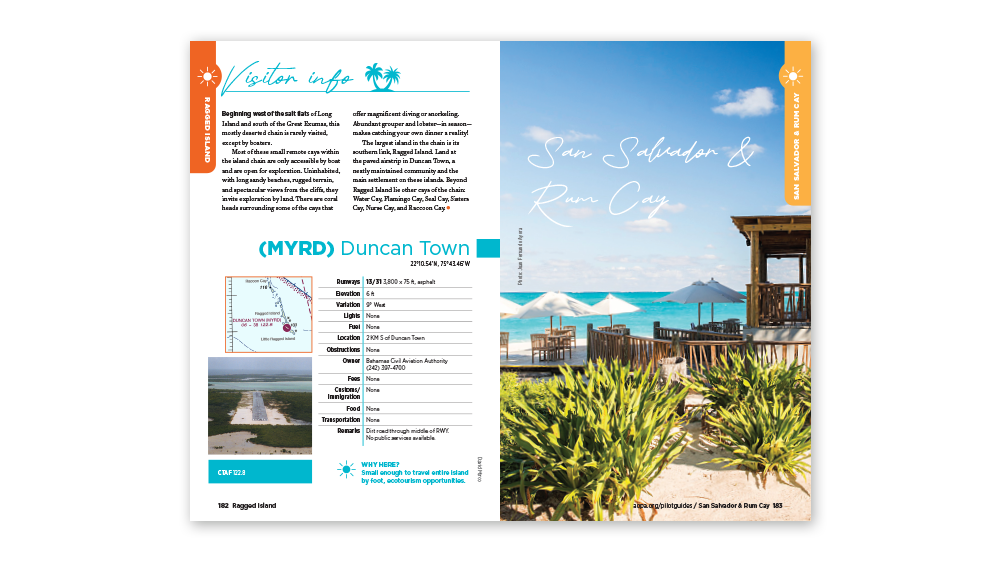 To the average tourist, The Bahamas means Paradise Island and other mega resorts. For the pilot, it means exploring more than 600 islands and cays that begin just 56nm off the coast of Ft. Lauderdale. Some are full of music and nightlife, Bahamians and other tourists, others are the ultimate ‘get away from it all’ destination and so many others are in between. But, do you know which islands have private airports? Which runways are gravel? How to fill out Customs & Immigration paperwork or how to contact them for your arrival? You will with The Bahamas Pilot’s Guide.