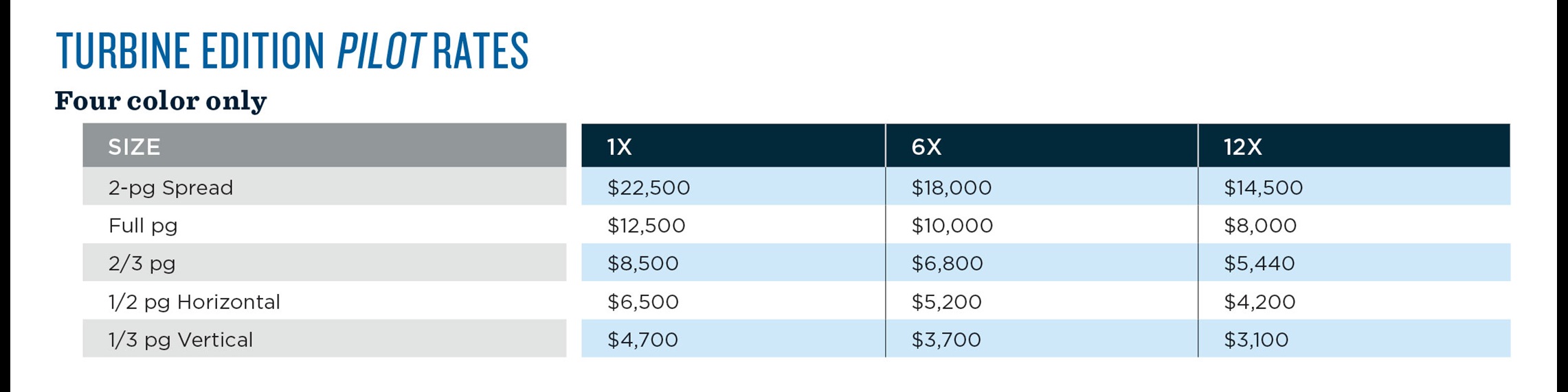 * Full-page black & white ads may be used in combination with four-color rates to earn the most favorable frequency. Fractional black & white ads (1/3 pg or larger) may be used only in combination with fractional color ads.