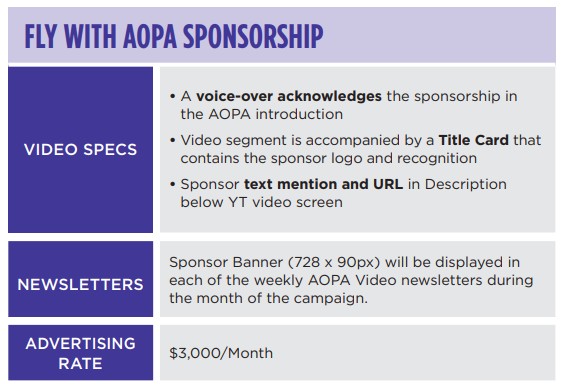 Bring your marketing message to the aviation masses with AOPA Video monthly sponsorship opportunities. Fly With AOPA stand-alone videos post weekly throughout the month on the AOPA Video YouTube channel. This burgeoning audience of more than 110,000 subscribers and 450,000 monthly views, your message and company logo are seamlessly integrated with professional on-screen talent and aligned with the most trusted and engaging video content in all of general aviation.