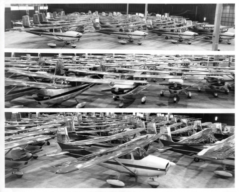 AOPA Online Members Only - 50th Anniversary of the Cessna 172 - Photo Hundreds of 172s await delivery in the late 1950s. Close Window