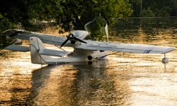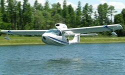 Jones turns the stick over to me and the seaplane handles with ease. The controls are light and responsive. A Garmin 496 mounted in the instrument panel provides navigation; weather and traffic data comes compliments of XM Satellite. Jones had flown the seaplane from Florida and said it was easy dodging bad weather and airspace. Cruising at 90 kt he and a passenger and a baggage compartment filled with camping gear burned 4.5 gph. A Dynon glass panel as well as a few steam gauges complete the rest of the panel.