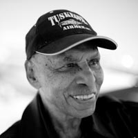 Roscoe C. Brown, Jr., received the Congressional Gold Medal in March 2007 on behalf of all Tuskegee airmen nearly 62 years to the day after he shot down a Messerschmitt Me 262 fighter jet at 24,000 feet above Berlin in a P-51C. After that victory he came across a German train with sides that dropped to reveal antiaircraft guns. He stayed low to avoid getting hit but felt an impact on his left wing that folded it and required him to use both hands on the stick to stay level. He told the ground crew he hit flak, but they found nearly three feet of wood with German writing on it. He later became president of Bronx Community College of the City University of New York (CUNY). When in New York you can see his television show, African-American Legends, on the CUNY cable channel. His show called Black Arts on WCBS won an Emmy Award.