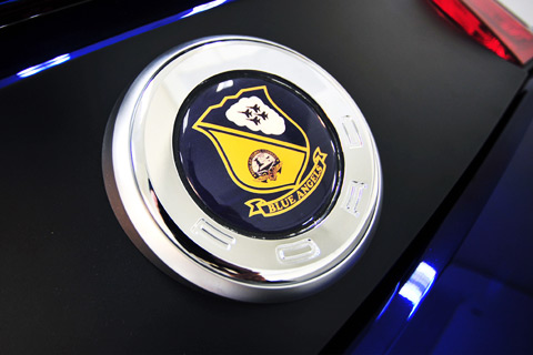 A highlight of the evening was the auctioning of a one-of-a-kind 2012 Ford Mustang themed on the Navy Blue Angels, in honor of the 100th anniversary of naval aviation. The Mustang design team, famed car performance specialist Carroll Shelby, and race car team owner Jack Roush who assisted in the design, were on hand to describe the chrome blue car emblazoned with a Blue Angels emblem. The 624-horsepower supercharged Mustang, donated by Ford Motor Co., rides on a custom suspension and stops on specially designed brakes. Shelby reported that some $80,000 worth of silver was used in making the unique paint finish, which seems to glow under lights. In the end the car sold for $400,000 and included a Blue Angels flight helmet signed by the current flight team.