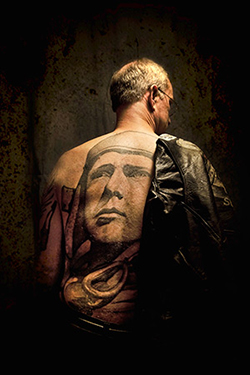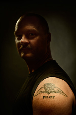 Pat Collins had a lifelong ambition to fly and finally got his wish as a helicopter pilot and mechanic in the U.S. Army. Retiring after a broken leg, he had to stop flying and took medical training to help his newborn daughter with a medical condition. During a visit to the Veterans Administration hospital in Buffalo, New York, to have some hardware in his leg exchanged, he was offered vocational rehabilitation and chose flight training. “I received my private rating in January 2011,” Collins said. His tattoo shows a Cessna 182 pulling banners with his grandchildren’s names on them.
