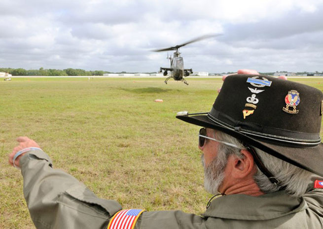 Almost 40 years ago, the Bell UH-1 Huey helicopter was the workhorse of Army aviation during the war in Vietnam—flying troops into and out of battles, evacuating the wounded to field hospitals, and delivering supplies. Today a Huey that saw combat in Vietnam is offering rides at the Sun ’n Fun International Fly-In & Expo, where passengers not only get to see the Sun ’n Fun grounds from the air, but they also get a taste of what infantrymen and Army aviators alike experienced in Vietnam. It is accompanied by a Bell AH-1 Cobra gunship.