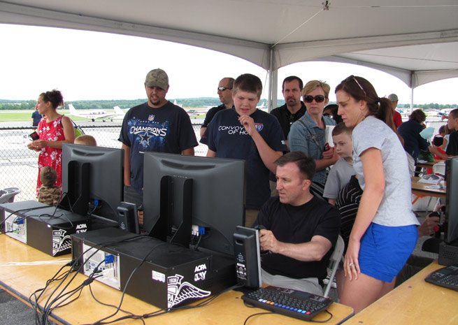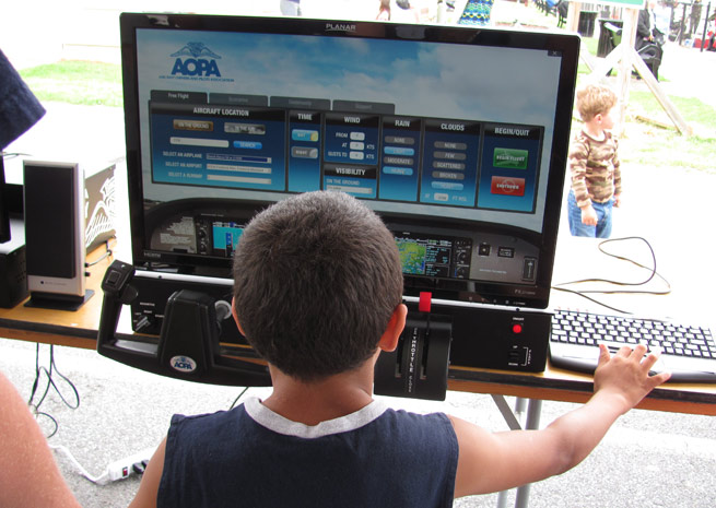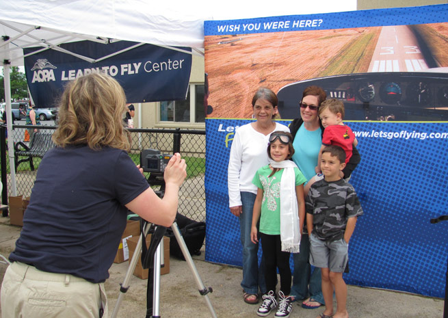 While attendees waited for their first flights, they could peruse a static display with 13 aircraft ranging from a hot air balloon gondola to helicopters to biplanes, along with typical training aircraft like a Cessna 172. Vendor booths from flight schools, the Air National Guard, The Ninety-Nines, and others were also set up to provide more information on learning to fly and careers in aviation. AOPA also offered a photo area and a tent with AOPA Jay simulators to let spectators try their hand at taking off, flying, and landing.