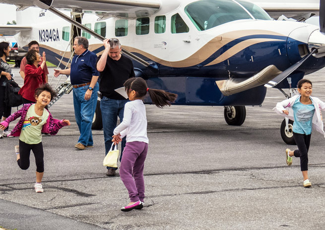 A few lucky loads of first-time flyers were carried by AOPA President Craig Fuller in AOPA’s Caravan over Harper’s Ferry, W.Va., for a scenic diversion. The experience, for one family vacationing in the area, drew excitement from the children who couldn’t contain their joy after the flight, squealing and running between family in the static display and those still disembarking.