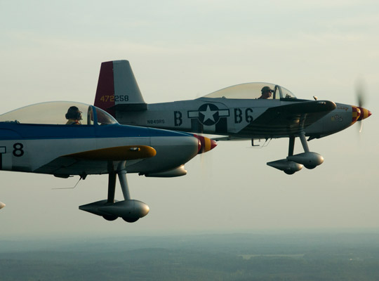 Civilian formation flying groups such as the Lima Lima Flight Team, Trojan Horsemen, Collaborators, and Black Diamonds are airshow staples. Team AeroDynamics flies both day and night routines with a dozen RVs—most of them built by the pilots who fly them.