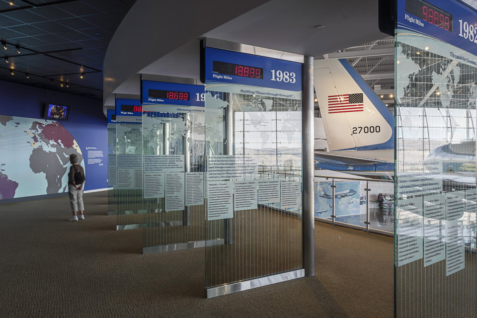 SAM 27000’s replacement, a customized Boeing 747-200, was ordered during Ronald Reagan’s administration but would not be received until 1990 (during George H.W. Bush’s administration). Believing that SAM 27000 would be retired when the 747 entered service, Reagan inquired about the possibility of bringing the airplane to the Reagan Presidential Library in Simi Valley, California—a dream that eventually became a reality. This seems an appropriate home for SAM 27000 because Reagan used it significantly more than any other president, and flew in it to more countries. (The two presidential Boeing 747s are VC–25As, SAM 28000 and SAM 29000.)