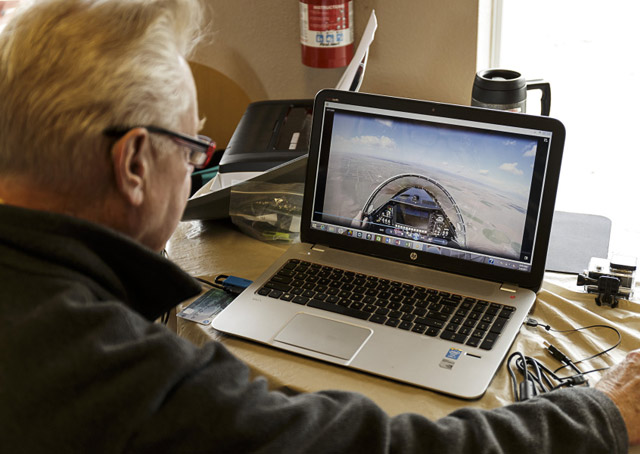 • FAA DPE Robert O’Haver scrutinizes cockpit video from the single-seat jet before granting a “letter of authorization” to a new pilot.