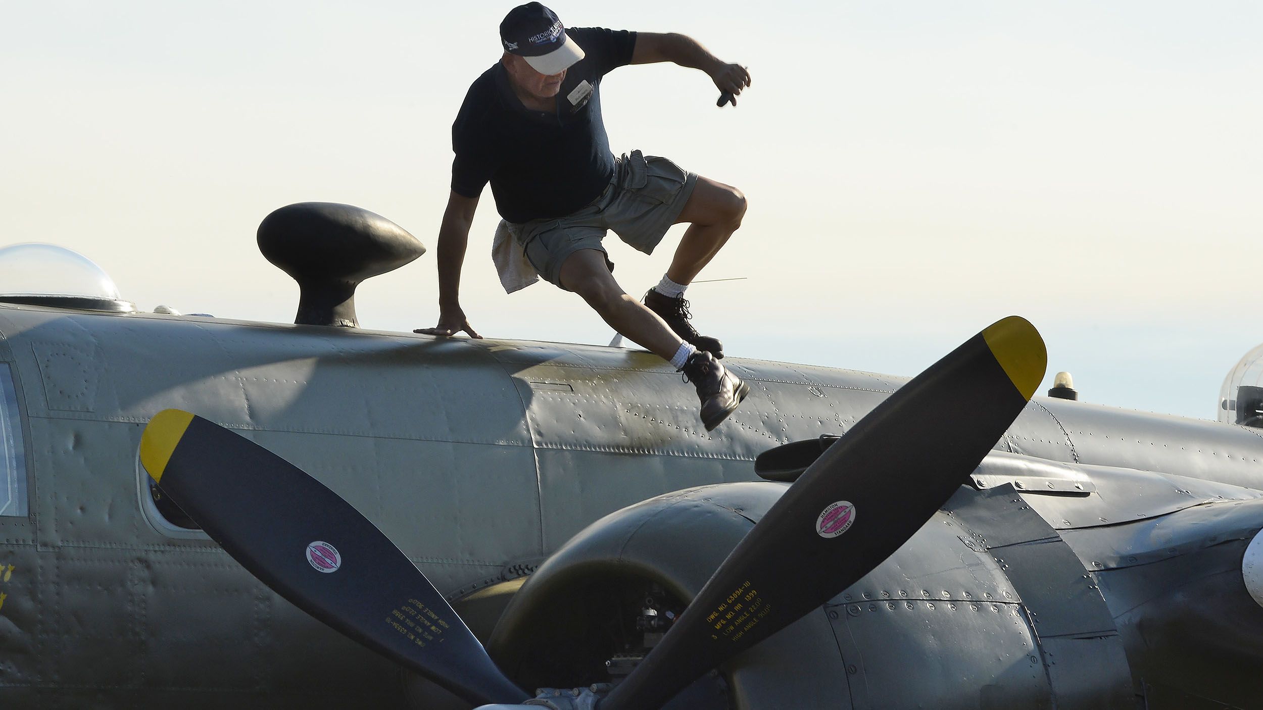 The Historic Flight Foundation’s North American B-25 Mitchell bomber nicknamed Grumpy turned heads when its large radial engines kicked to life. The aircraft was on hand for scenic rides that “could accommodate six, with four up front and two in the rear,” said Crew chief Bob Otero as he preflighted one of the aircraft’s two big engines. “She’s allowed to burn, leak, or blow one gallon of oil per hour, per engine,” he told a gathering crowd.